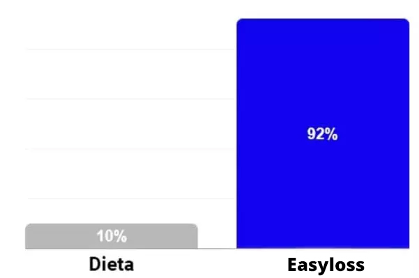 A vizsgálatban résztvevő Easyloss használók 90%-a több mint 17 kg-ot adott le két hónap alatt, míg a hagyományos fogyókúrás módszereket alkalmazó emberek esetében ilyen eredményt csak a résztvevők 10%-a ért el.