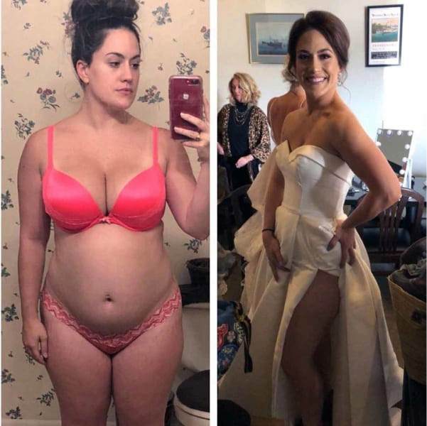Egy másik példa Mária esete: a lány nagyon szeretett volna lefogyni a közelgő esküvőjére. Amint Önök is láthatják, sikerült neki, és több mérettel is csökkent a ruhamérete.